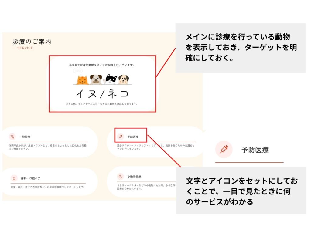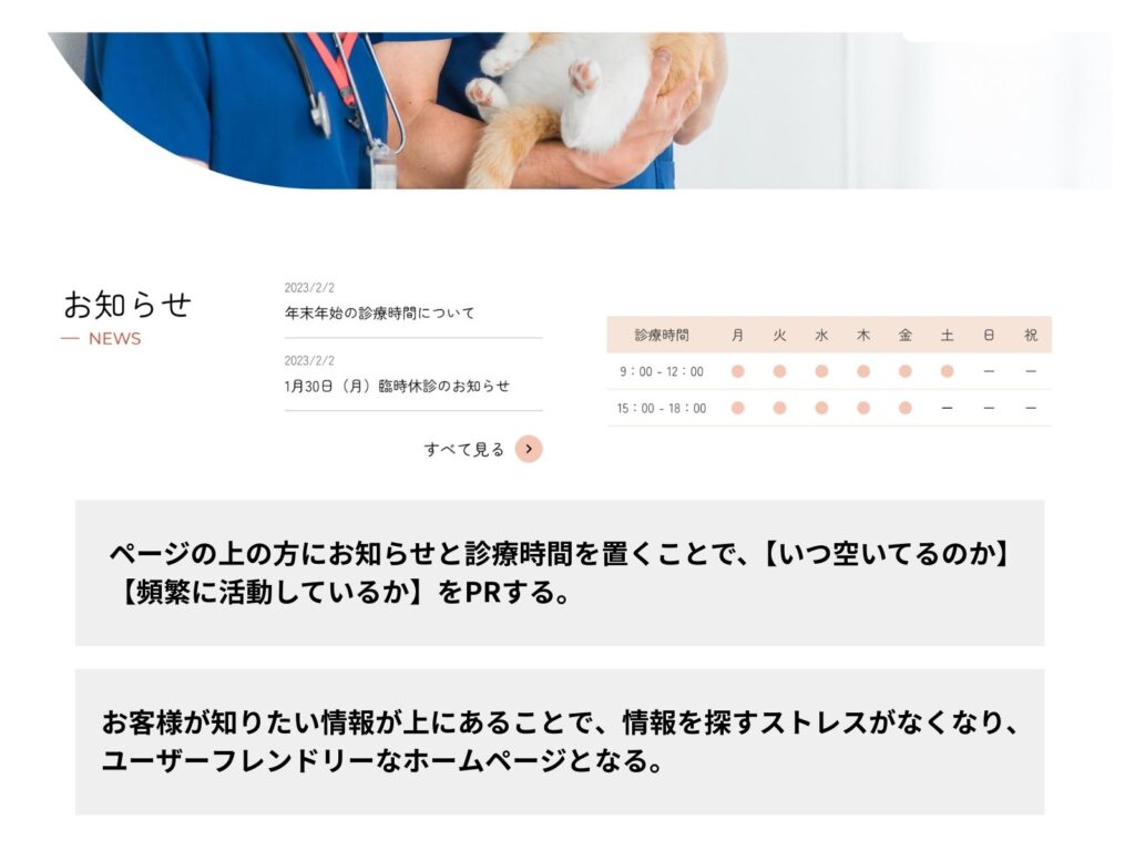 特に動物病院のように情報量が多いサイトでは、混乱を防ぎ、ユーザーのストレスを大きく減らせます。