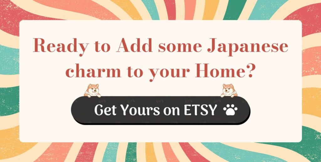「Ready to Add some Japanese charm to your Home?」という問いかけコピーで、読者に行動を促しつつ、Etsy購入ボタンをシンプルで親しみやすいデザインに仕上げました。