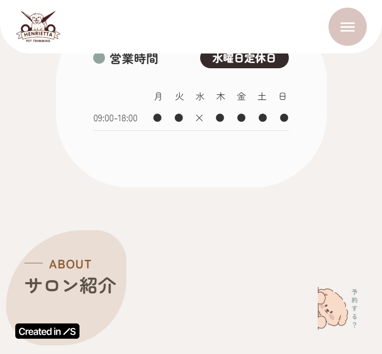 営業時間枠やパーツの角を丸め、全体の色味を少しくすませることで、サロンの雰囲気に合った 柔らかく親しみやすい世界観 を表現。
