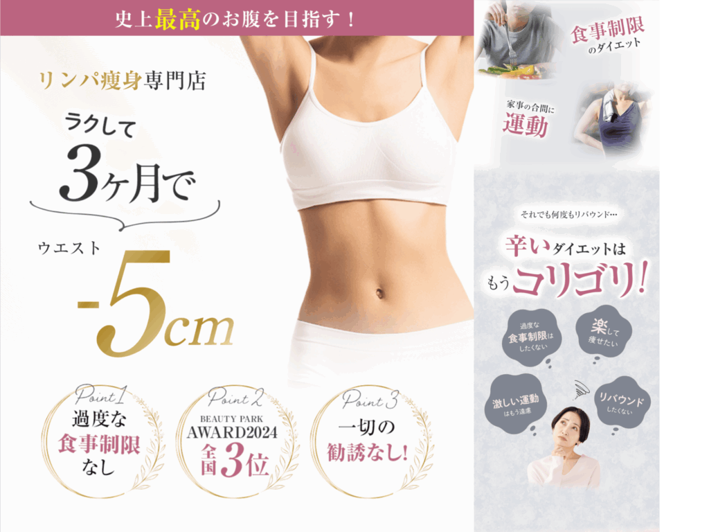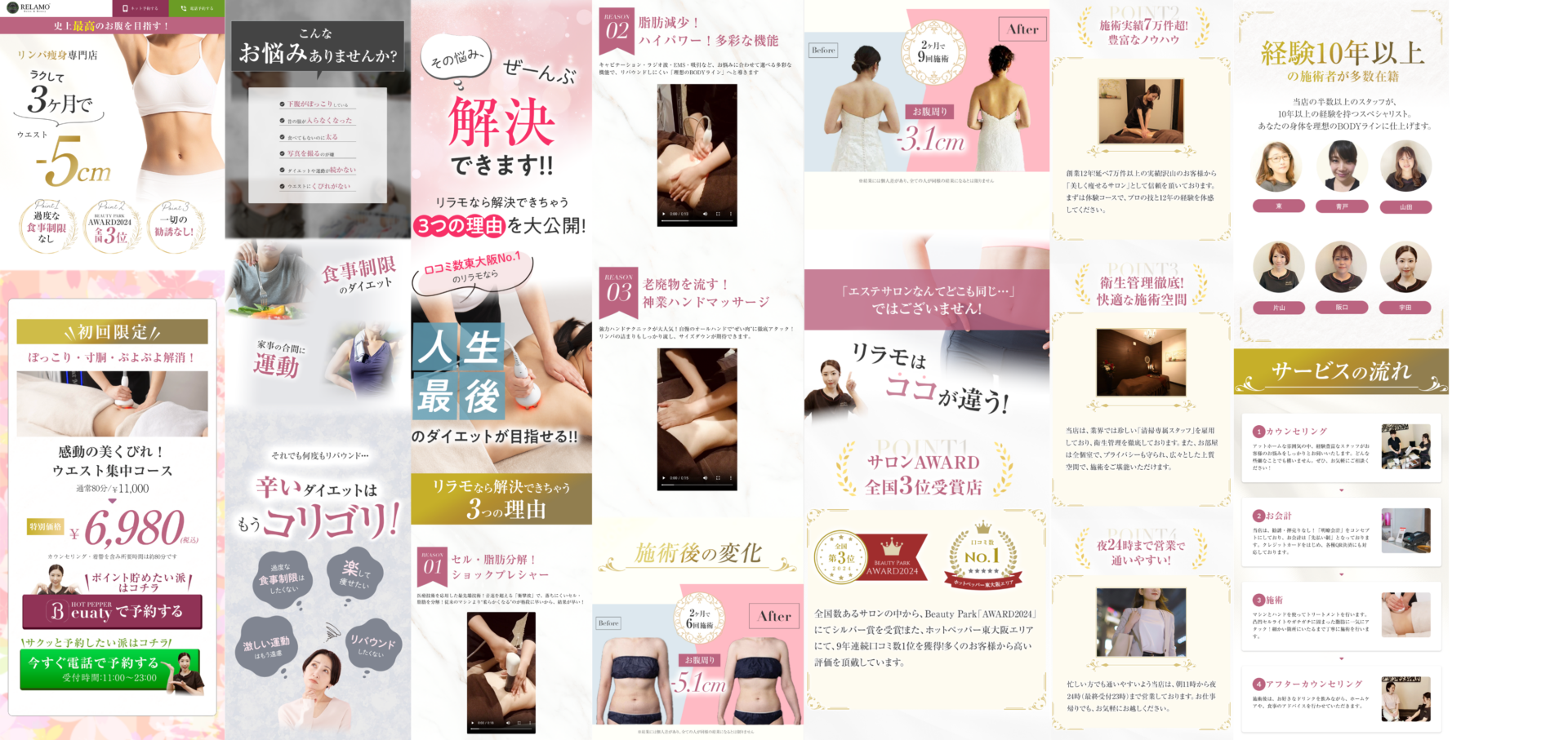リンパ痩身専門店RELAMOのウエスト集中コースの予約促進ランディングページ制作を担当。