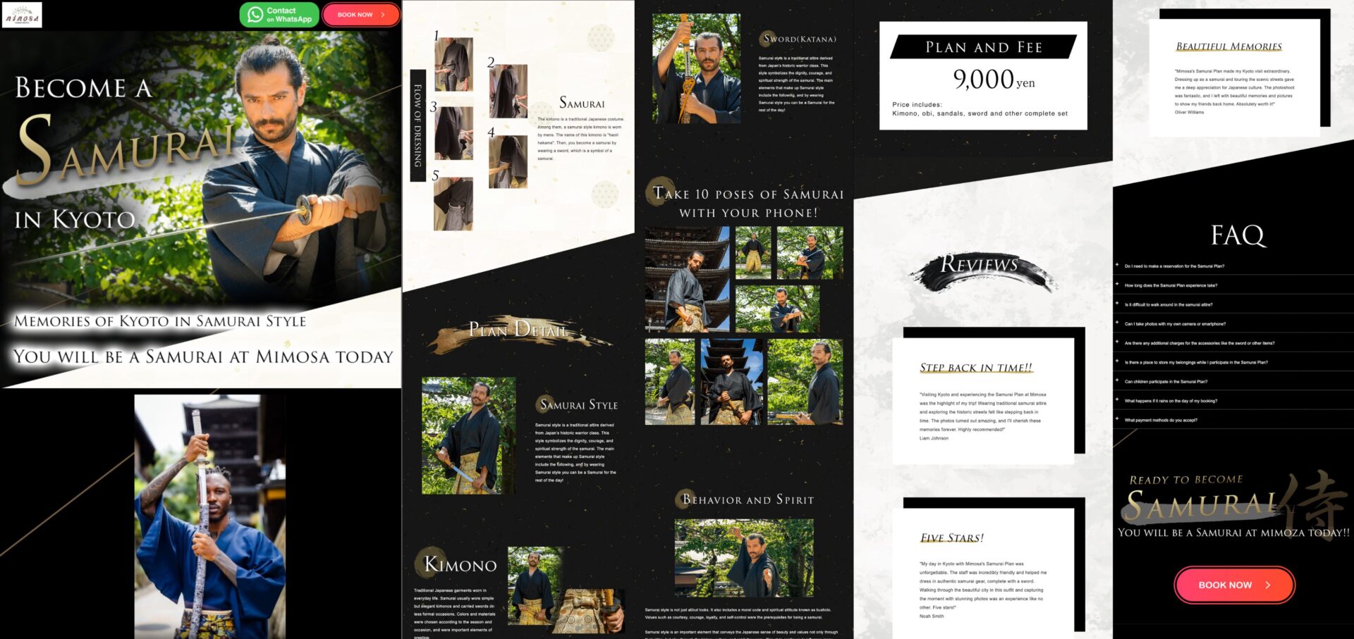 着物レンタルmimosaのインバウンド向け 侍プランの申し込み促進ランディングページ