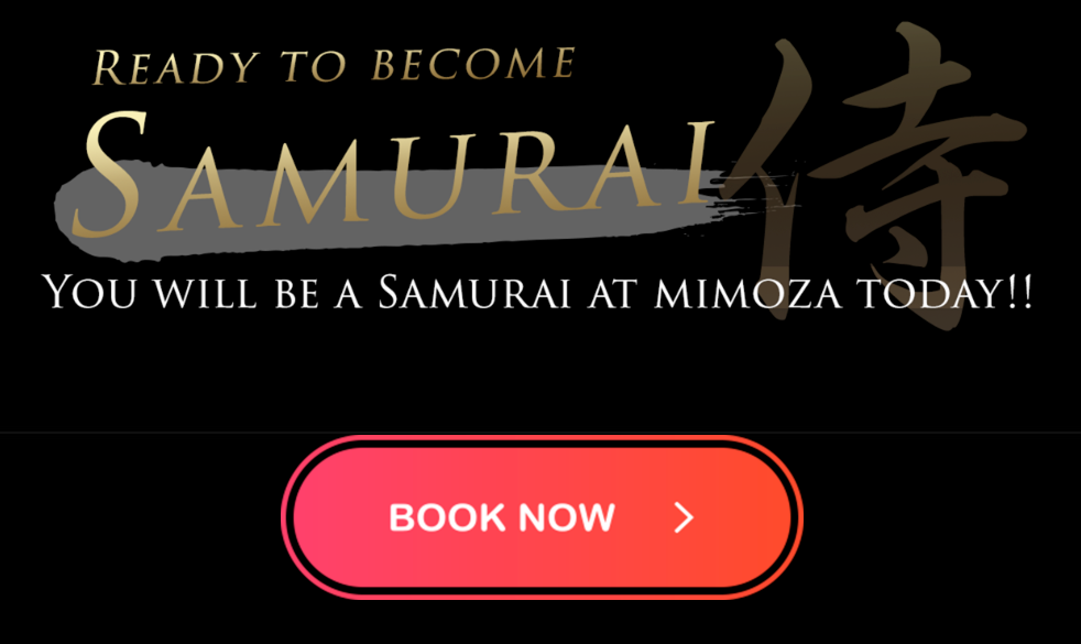 「Ready to become SAMURAI」「You will be a Samurai at Mimoza today!!」といった直球コピーで、「今すぐ予約すれば今日から侍になれる」というワクワク感を演出。訪日客が求める“非日常体験”を強調しています。