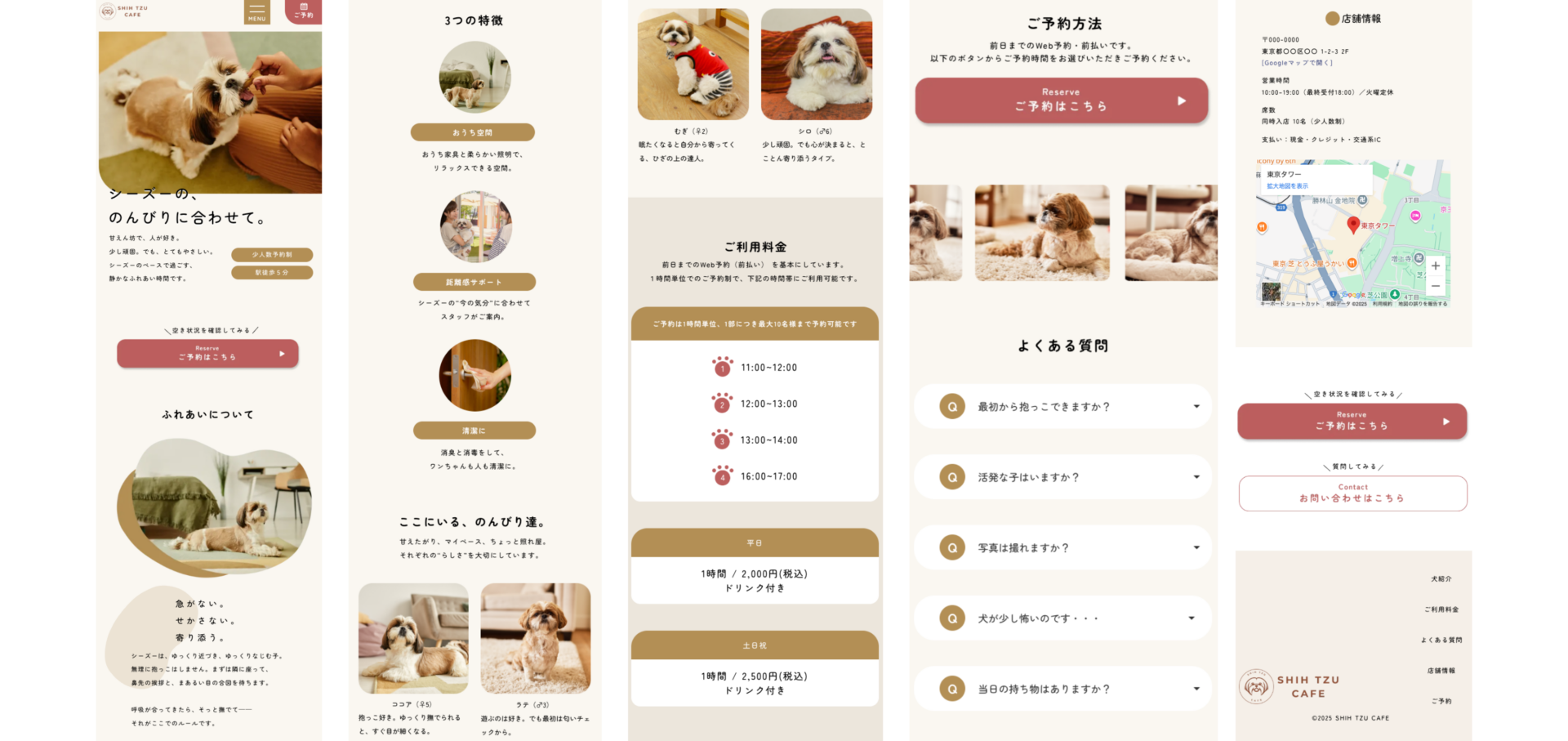 シーズーの色合いと性格をコンセプトにした1ページ型ホームページを制作。